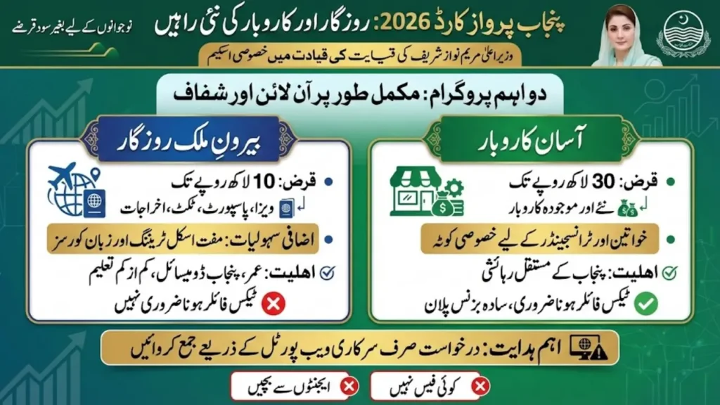 Parwaaz Card 2026 is a flagship welfare and empowerment initiative of the Punjab Government. The scheme provides 0% interest loans to eligible citizens of Punjab so they can either work abroad or start their own business at home.
